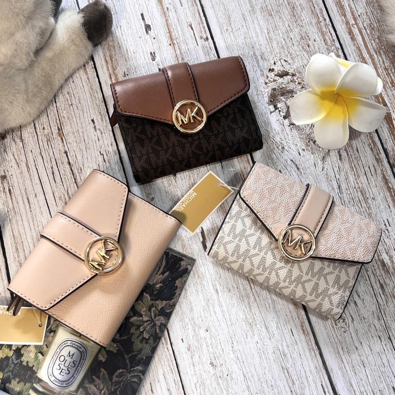 【Michael Kors】 MK 翻蓋質感扣環 圓Logo 信封 短夾 中夾 三折