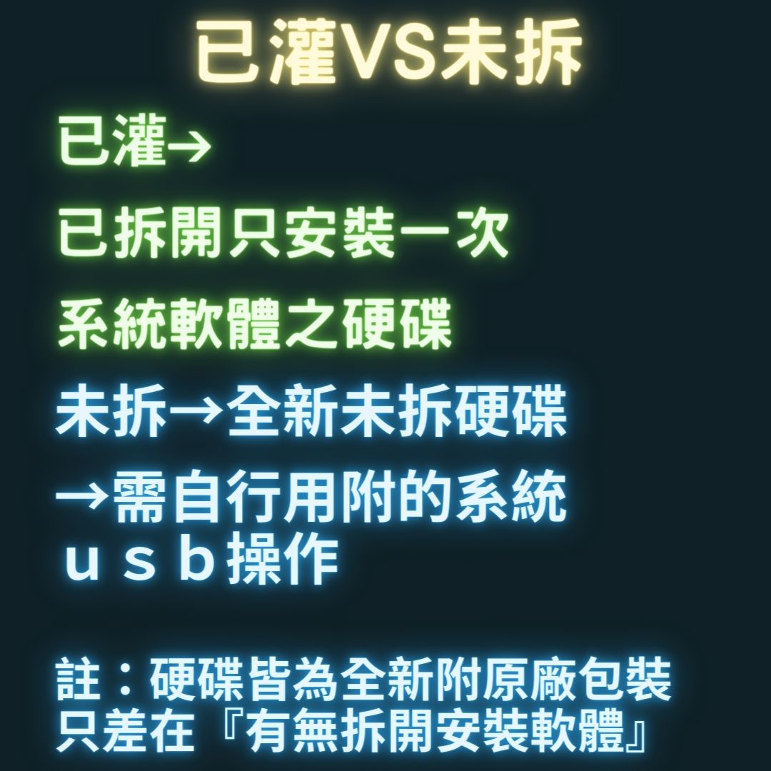 (硬碟皆為全新,只差在有無拆開灌軟體)
