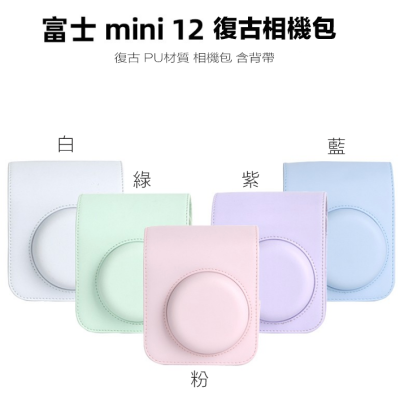 含背帶, 可側背 現貨 Mini 12 復古皮套 粉色 藍色 白色 綠色 紫色 拍立得相機 透明殼 相機包 保護套 側背包
