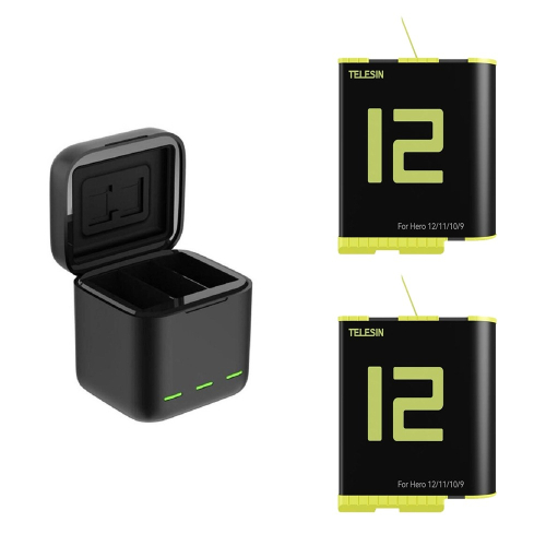 品名:TELESIN GOPRO HERO9 / HERO10 / HERO11/HERO 12 收納式三槽充電器 適用;hero9/hero10/hero11 電池 輸入:5V 2.4A 輸出:4.4V 800mA X3 包裝清單:充電盒*1資料線*1 含包裝重量:130g 包裝尺寸:12.5X10.7X5.7CM
