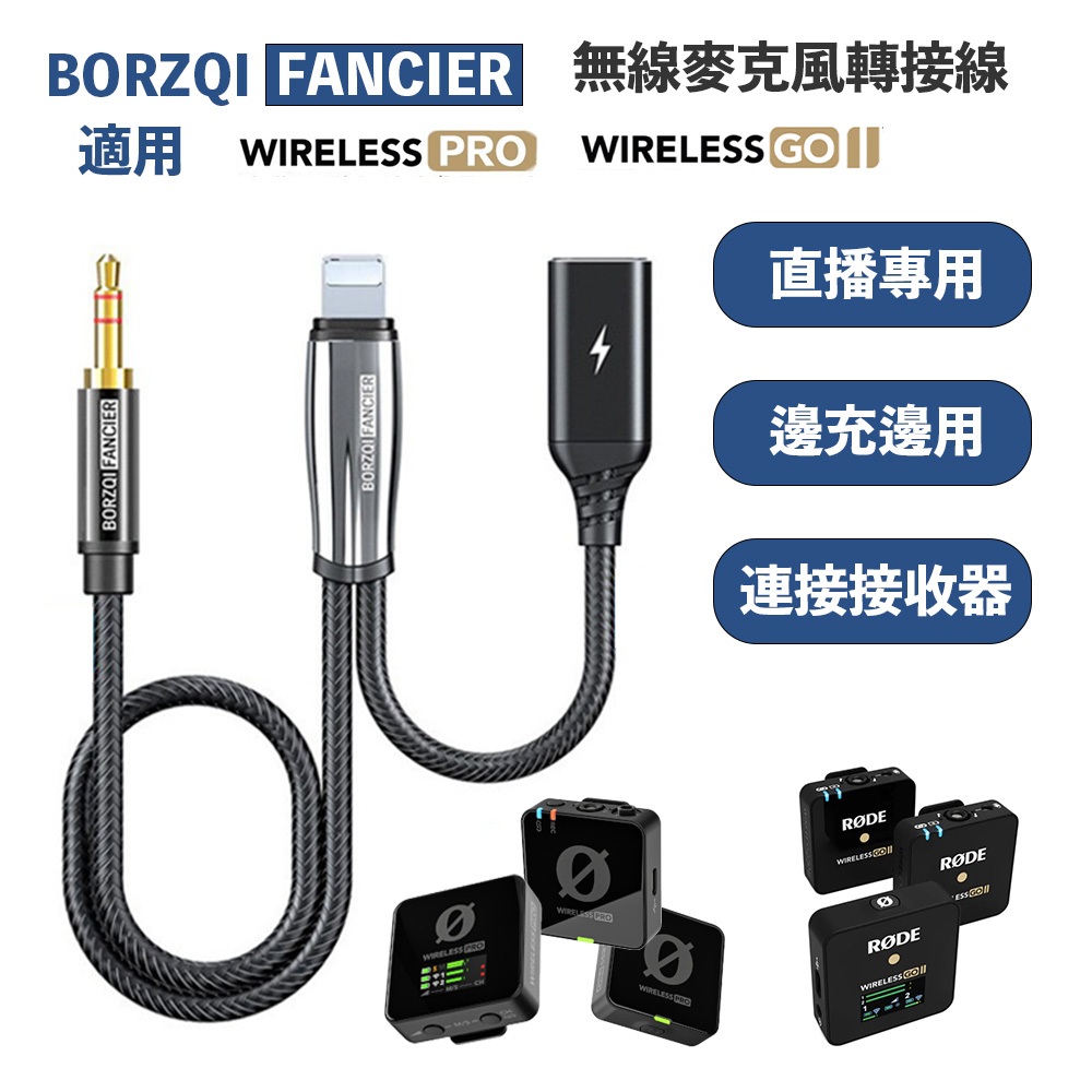 ① 使用「RODE SC7 轉接線 TRS(公) to TRRS(公)」搭配「蘋果原廠 轉接線 Lighting(公) to 3.5mm(母)」,兩條組合使用