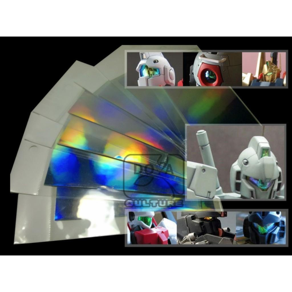 品名:升級!超薄 ! 第3代炫目彩光貼 規格:6.5 cm * 10.5 cm 可用於鋼彈眼部,槍的瞄準器或者其他外露部位。可隨意發揮自己的DIY能力,使模型裝飾進入一個新的高度 !