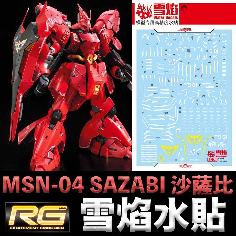 雪焰水貼 螢光版 BANDAI 鋼彈UC RG 1/144 #29 MSN-04 SAZABI 沙薩比 水貼紙