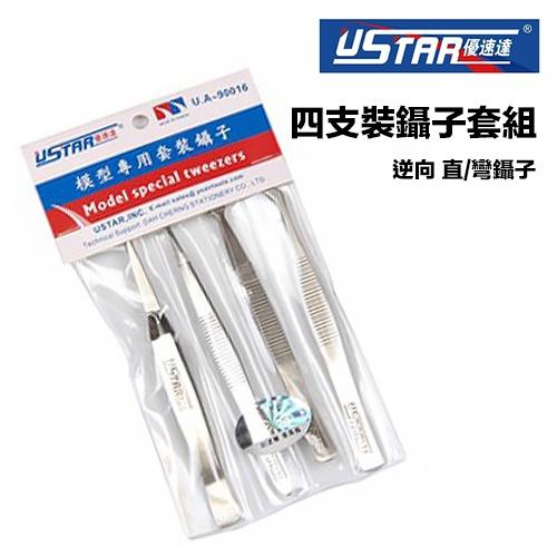 【鋼普拉】現貨 優速達 UA90016 模型專用套裝鑷子 4支套組 彎夾 尖鑷子 直夾 夾子 模型夾