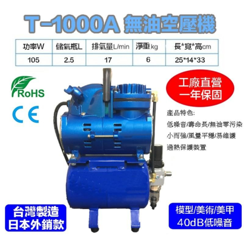 【鋼普拉】台灣製造 T-1000A 鋼彈 模型 噴漆 噴槍 1/6HP 無油靜音空壓機 含儲氣桶+調壓濾水裝置+風管