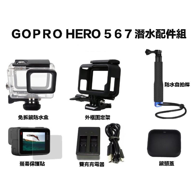 【eYe攝影】加購價 GOPRO 副廠潛水配件組 防水盒 + 外框固定架 + 自拍桿 + 保護貼 + 鏡頭蓋 + 充電器