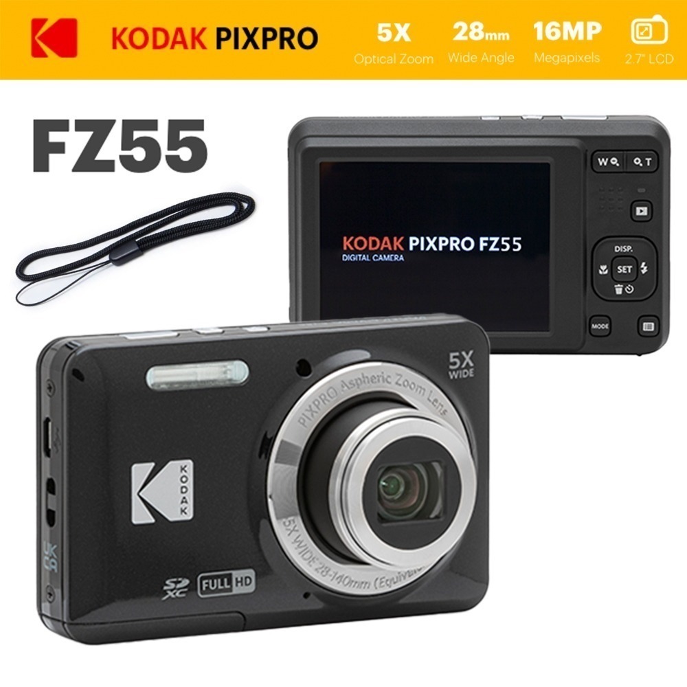 認識柯達 PIXPRO 數位相機系列中的 FZ55 友善變焦相機。這款纖巧設計的傻瓜相機配備了可充電鋰離子電池,是一款升級版。一鍵式高清影片、28mm 廣角鏡頭以及一系列功能和拍攝模式,讓您表達內心的創造力。