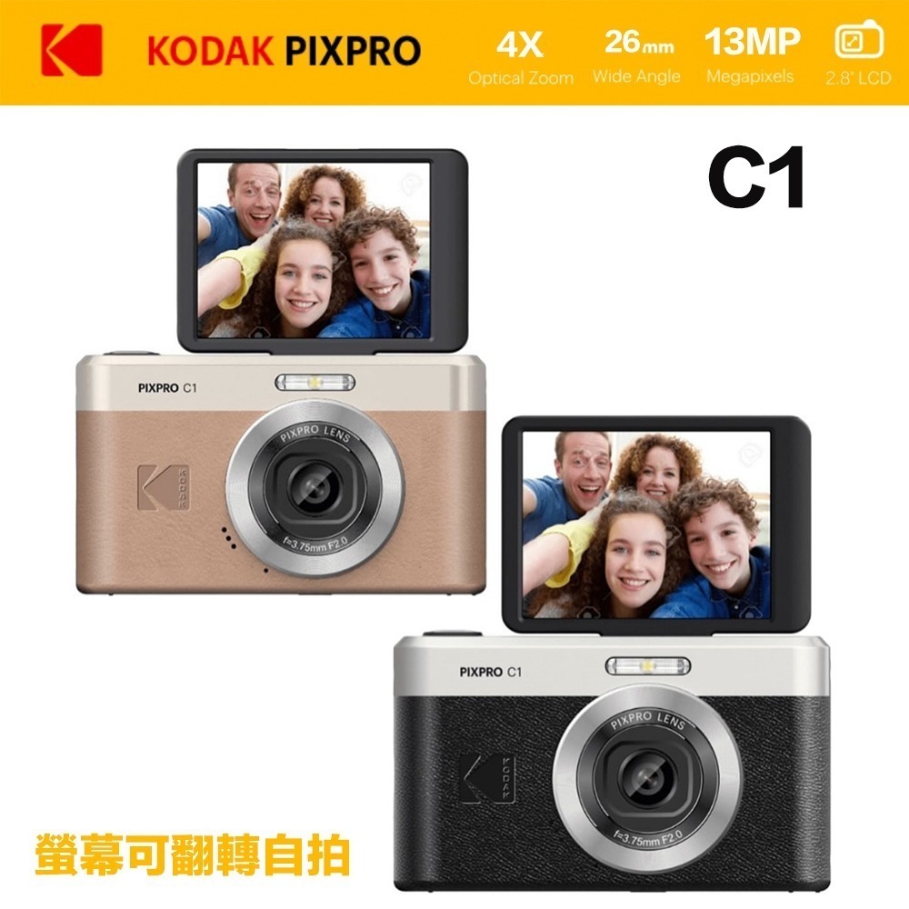 柯達Kodak掌握滿滿CCD精神【輕巧機C1】順勢推出PIXPRO C1,內建閃光燈搭載26mm廣角鏡頭