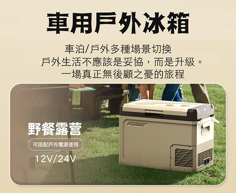 Alpicool GE系列是一款採用德國技術壓縮機的戶外式冰箱。非常適合家庭戶外露營或釣魚或海冰飲料。保持食物新鮮,也適合長途貨車司機冷凍食物。