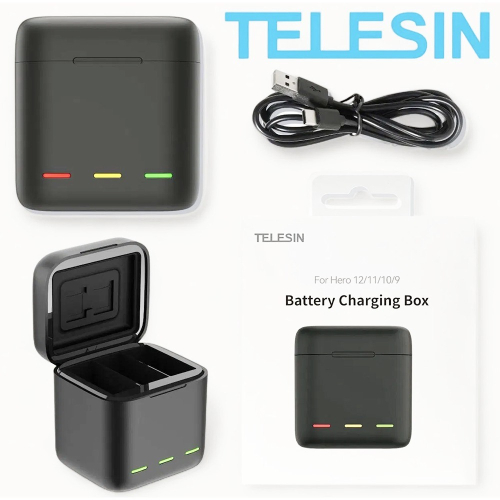 TELESIN GOPRO HERO 9 10 11 12 收納式 三槽充電器 收納盒 三充