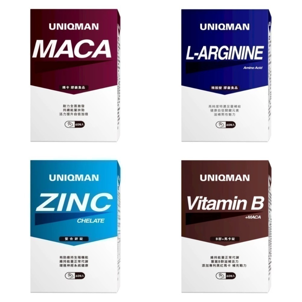 UNIQMAN 優仕曼 瑪卡、精胺酸、B群+馬卡、螯合鋅 膠囊 (60粒/瓶)