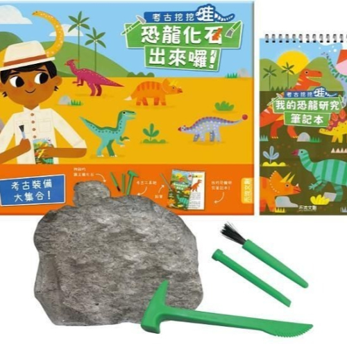 考古學家的工作除了「發掘」之外,要做事情還有很多,跟著套盒內附的「我的恐龍研究筆記本」,一步一步成為小小考古學家吧!當發掘考古遺跡後,考古學家要記錄發現到的情形,包括內容、時間、過程、方法等。挖出化石後,小小考古學家能根據整理出來的資料復原出古代恐龍的樣貌喔,這個過程目的是培養孩子的觀察力和描述能力。