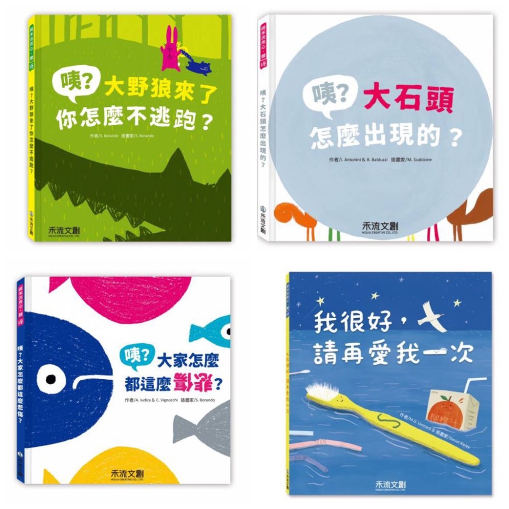 森林裡傳來一個令人擔憂的消息,有一隻飢餓的大野狼來了,而且很多小動物都消失不見了。害怕的小 兔子開始逃跑,他遇到不慌不忙的蝸牛爺爺、睡到叫不醒的睡鼠妹妹還有固執的驢子叔叔,小兔子拼命 地大喊「快跑啊!快跑!」,但是「咦?大野狼來了你們怎麼不逃跑?」, 小兔子能拯救這些小動物嗎?還是說,森林裡根本沒有大野狼呢? ★ 動物習性的反思 小讀者可以從故事的發展了解各種動物的特性,也因為每種動物都有自己的性格,故事才有精彩的波 折,例如睡鼠是最愛睡覺的動物,牠可能在睡夢中餓死;地鼠視力極差,但是牠卻看得到大野狼? ★ 以可愛的方式,詮釋固執 主角小兔子每遇到一個小動物,腦海中就會提出一個疑問,「咦?大野狼來了你怎麼不逃跑?」,並且 拼命地叫大家快跑,大家因各自的性格,展現出不同的固執,但熱心的小兔子都一一克服了,直到遇 到一個他無法幫助的對象,一個打從內心固執的動物。故事中每個人的固執都有原因,說服各式各樣 的固執也有不同的方法, 《咦?大野狼來了你怎麼不逃跑?》是非常適合一讀再讀的寓言故事,不同心境、不同時間的推敲,都能發掘不同的意義。 ★ 相似的句型,堆疊出節奏韻律 《咦?大野狼來了你怎麼不逃跑?》非常適合大聲朗讀,相似句型的重複堆疊,除了讓孩子輕易地熟 悉故事內容,也讓疑惑的情緒不斷地高漲,最後,一口氣釋放。所以可以大聲朗讀試試看喔! ★ 啟發思考能力 「咦?」當孩子發出疑問時,代表著他們對世界充滿好奇心。 《咦﹖大野狼來了你怎麼不逃跑﹖》內容 引導孩子進行思考,除了啟發孩子的思考力,也可以鍛鍊批判能力、解決問題及溝通,亦激發其想像力。 ✨咦?大石頭怎麼出現的? 「這塊石頭好大、好光滑、好圓!」 道路上突然出現一顆灰色的大石頭,擋住小動物的路,小動物們開始從各自的角度提供意見,七嘴八舌 地討論石頭怎麼出現的、它是屬於誰的。最後牠們發現團結才是力量,是時候把大石頭推開了。正當牠 們努力地推著石頭時,一個巨大的噴嚏聲響起,這塊石頭竟然是……。 ✨咦?大家怎麼都這麼悲傷? 本書特色 ★用可愛的方式,詮釋悲傷 悲傷是個沉重的感覺,灰濛濛的讓人很疲憊,但是《咦﹖大家怎麼都這麼悲傷?》通過色彩豐富的插圖和簡單的線條,剖析「悲傷」的情感。在純白的底圖上,顏色鮮明的海洋生物雖然表情悲傷,但是色彩卻十分活潑,這也許是個可愛的隱喻。故事最後用俏皮的方式,讓讀者的歡笑中收場。也許每個悲傷都可以換個角度,在微笑中釋放。 ★悲傷課題,不分年齡 「悲傷」時常是大人避之而不談的情感,在兒童讀物裡更是如此,但是,大人似乎都忘了,孩子們有種神奇的魔力,他們喜歡改變對現實的詮釋方式,他們比任何人都更懂得如何改變糟糕的情緒,並且再次為自己帶來歡笑。《咦﹖大家怎麼都這麼悲傷﹖》除了帶領孩子熟悉轉換悲傷的方式,同時也幫助大人面對這些悲傷,放下對悲傷的堅持,換個方向,豁然開朗。 ★相似的句型,堆疊出節奏韻律 《咦﹖大家怎麼都這麼悲傷﹖》非常適合大聲朗讀,相似句型的重複堆疊,除了讓孩子輕易地熟悉故事內容,也讓整個悲傷的情緒不斷地堆疊,讓疑惑的情緒不斷地高漲,最後,一口氣釋放。所以可以大聲朗讀試試看喔﹗ ★啟發思考能力 「咦?」當孩子發出疑問時,代表著他們對世界充滿好奇心。《咦﹖大家怎麼都這麼悲傷﹖》內容引導孩子進行思考,除了啟發孩子的思考力,鍛鍊孩子批判思考、解決問題及溝通,亦激發其想像力。