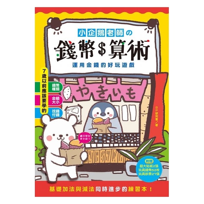 跑腿買東西!小企鵝老師的錢幣算術:加減法實際運用X基礎乘法練習,多款錢幣實例運用的好玩遊戲練習本(隨書附贈:貼紙2大張,玩具鈔票27張,玩具錢幣50枚)
