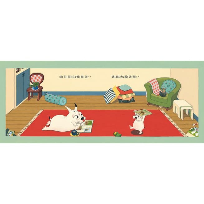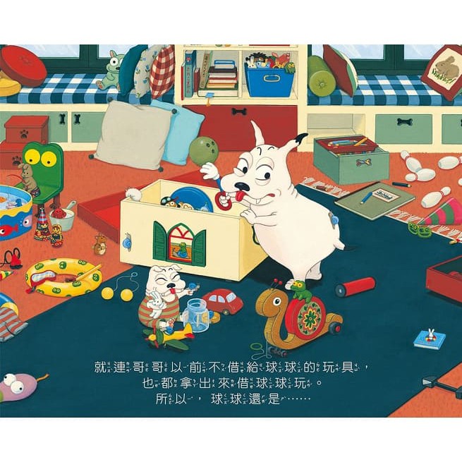 球球最愛哥哥了,所以總是愛模仿哥哥,哥哥畫圖時,球球也要畫圖;哥哥看書時,球球也跟著看書;哥哥睡著了,球球也跟著睡……面對這黏人的傢伙,哥哥只好想辦法逃離球球的糾纏……