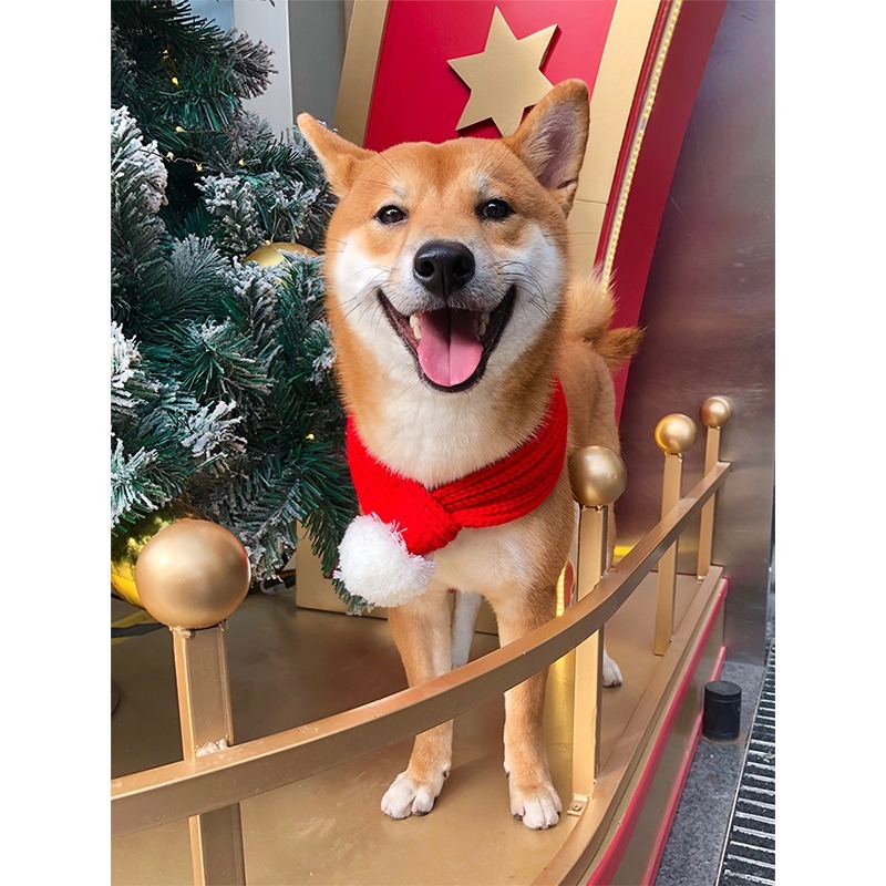 造型:紅色寵物毛球圍巾