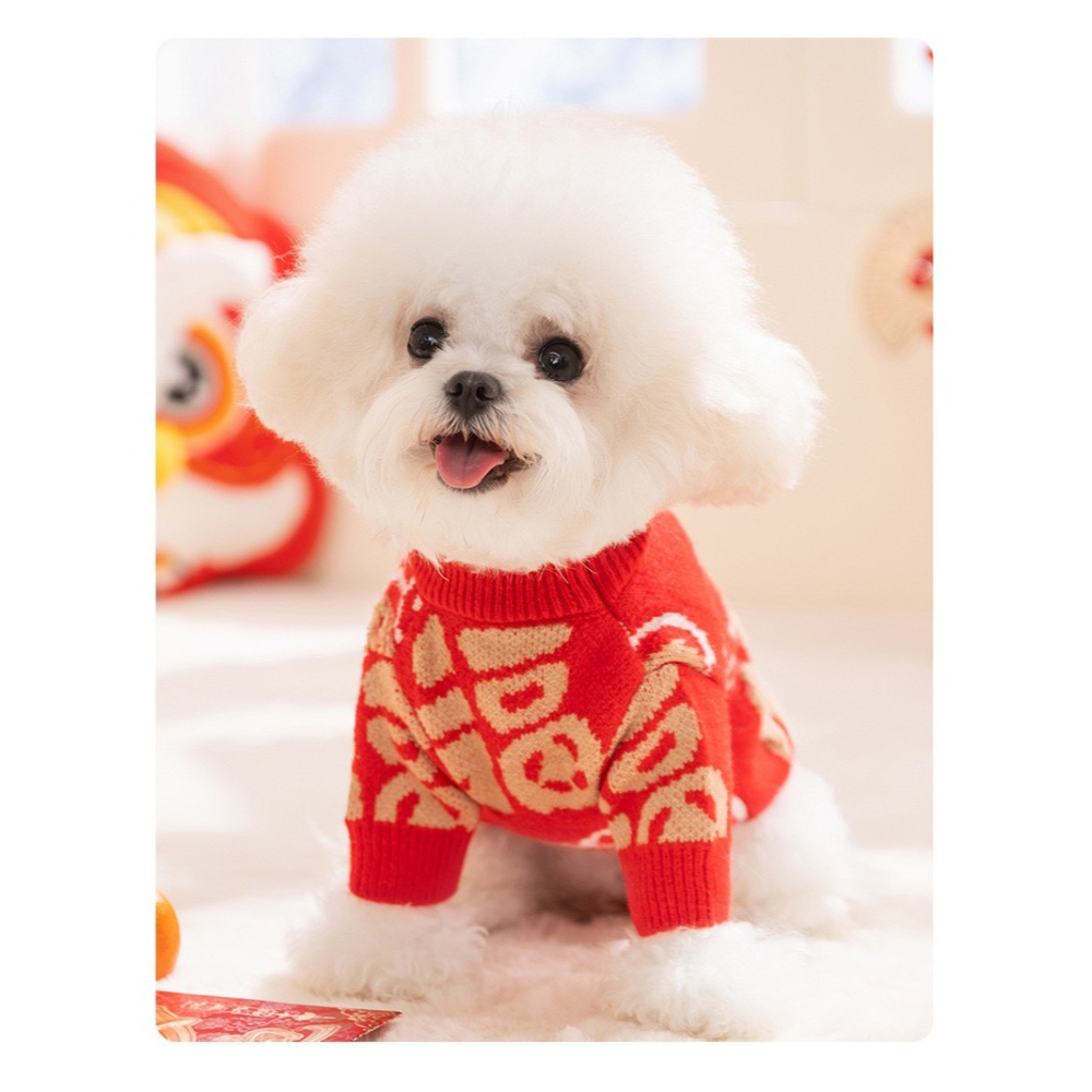 【汪喵森活】新年 春節 紅色毛衣 福字 包芯紗 過年 貓狗過年 寵物服飾 狗衣服 貓咪 貴賓狗 比熊 馬爾濟斯
