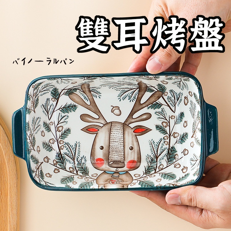 防護包裝【森林動物雙耳烤盤】長方形雙耳盤子 烤盤 拍照道具 雙耳烤盤 方形烤盤 烤箱烤盤 陶瓷烤盤 灰熊SONG