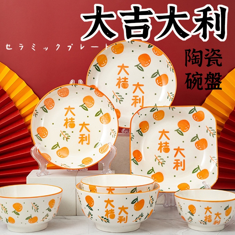 破損包賠【大吉大利橘子餐具 】 湯碗 飯碗 大吉大利 陶瓷盤 瓷盤 北歐盤子 湯盤 擺盤 甜點盤 平盤 入厝禮 8吋盤