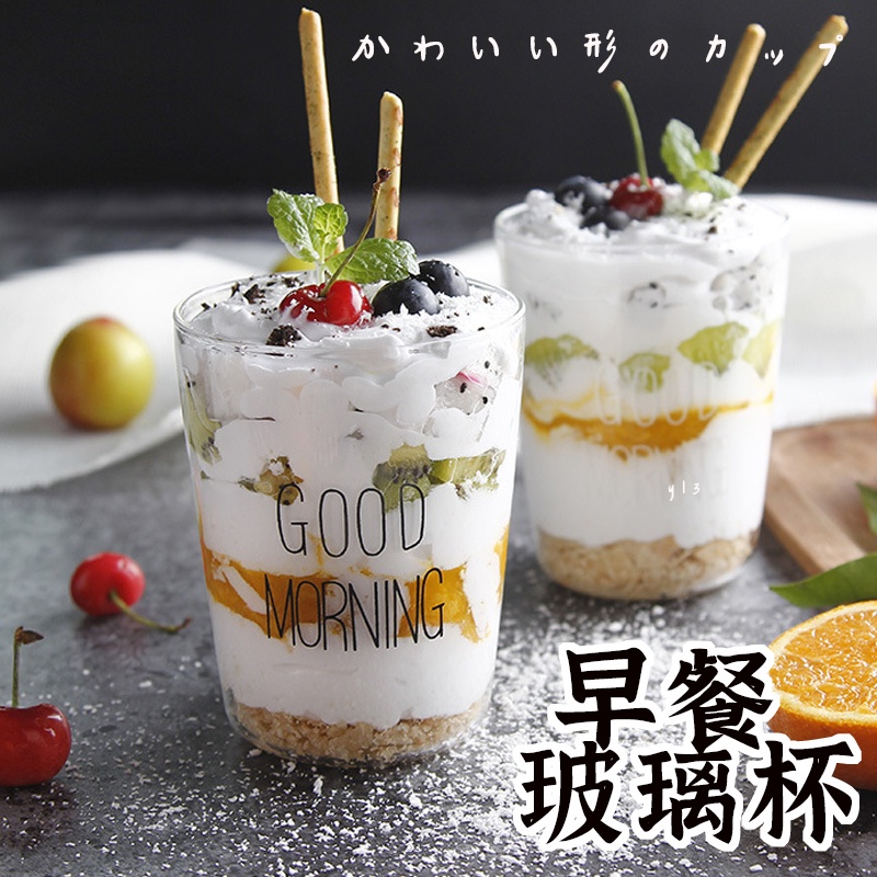 玻璃早餐杯good morning】玻璃杯 早餐杯 北歐風牛奶杯 沙拉杯 早安杯 玻璃杯 飲料杯 水杯 杯子 早安玻璃