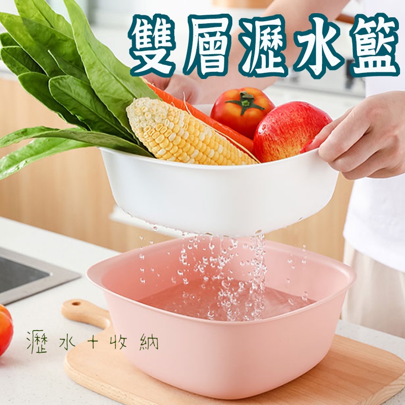 雙層四方分離瀝水盆 】 多功能瀝水籃 洗菜籃 水果籃 洗菜盆 洗米盆 淘米器 洗米器 洗米瀝水盆 瀝水籃