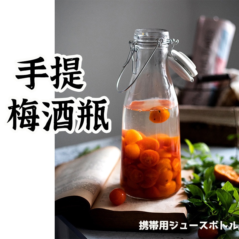 防護包裝【手提梅酒瓶 】 梅酒瓶 密封罐 玻璃罐 罐子 罐 酒瓶 1000ml 密封盒 釀酒玻璃瓶 玻璃密封罐