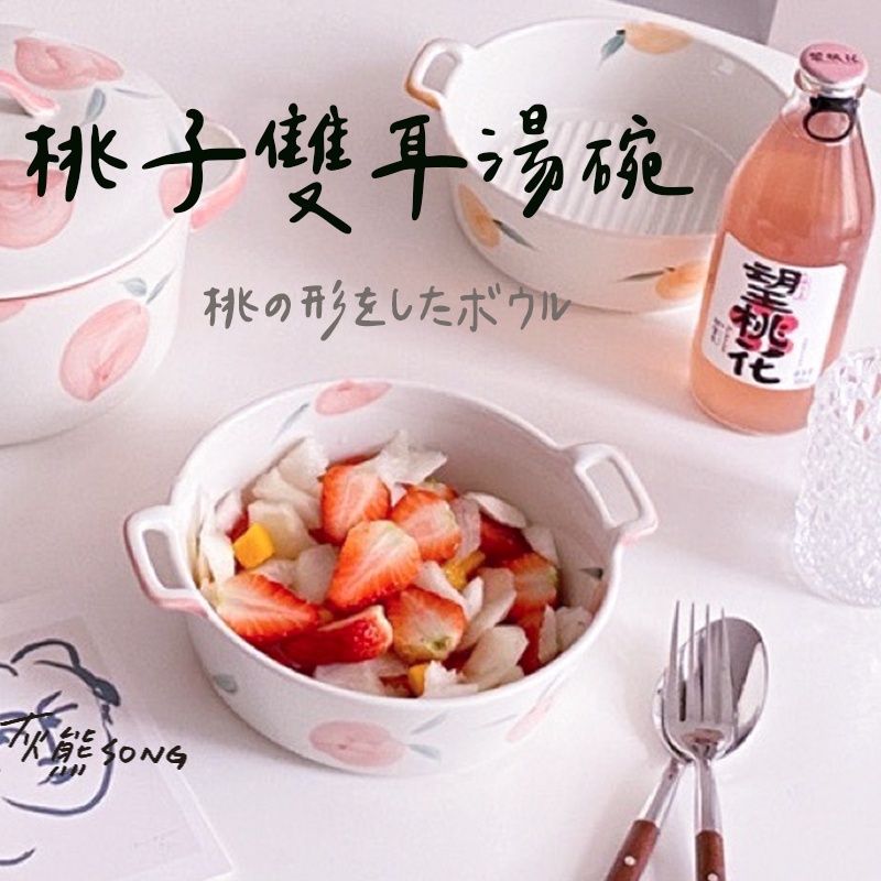 台灣出貨【桃子雙耳湯碗 】 陶瓷碗 泡麵碗 拉麵碗 雙耳湯碗 拍照碗 交換禮物 湯碗