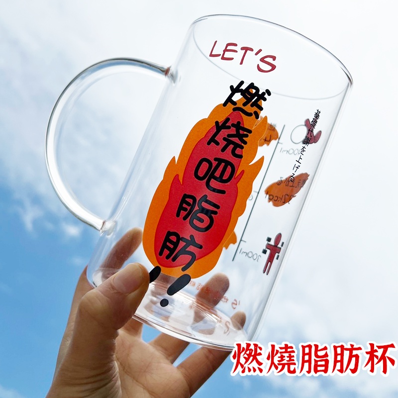 脂肪燃燒杯】玻璃杯 創意杯子 喝水杯 雞尾酒杯 網紅杯 帶把手杯水杯 啤酒杯 果汁杯
