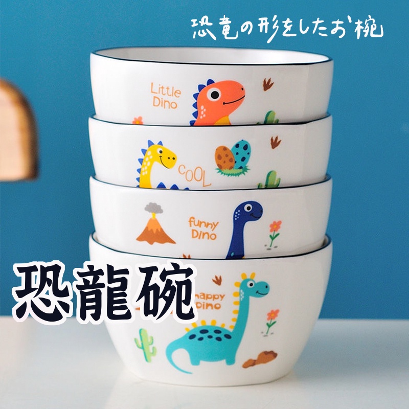 安全包裝【恐龍陶瓷飯碗 】 碗盤 碗 兒童餐具 飯碗 日式碗盤 飯碗 4.5吋碗 恐龍碗 大碗 陶瓷碗