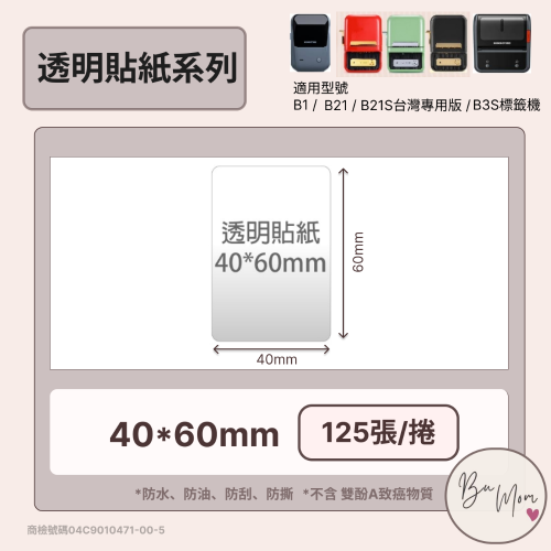 【B1 B21S B3S 精臣標籤機專用】❤透明系列❤ 透明40*60