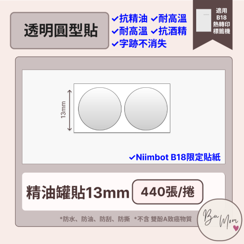 【B18 精臣標籤機熱轉印專用】❤透明系列❤ 透明圓13mm (適用精油罐)