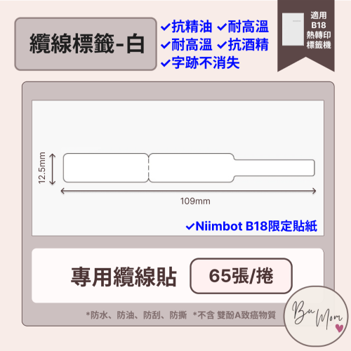 【B18 精臣標籤機熱轉印專用】❤白色系列❤ 纜線白