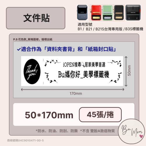 【B1 B21S B3S 精臣標籤機專用】❤白色系列❤ 文件貼50*170