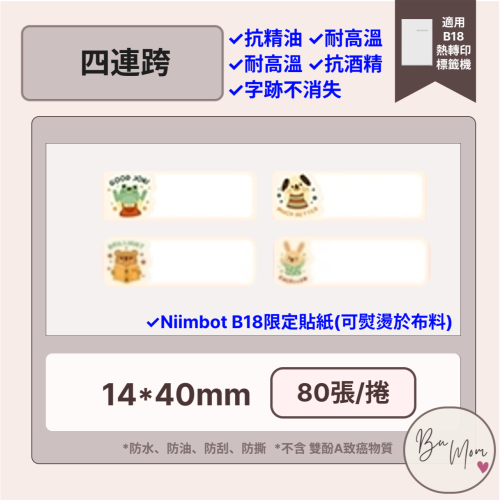 【B18 精臣標籤機熱轉印專用】❤熨燙系列❤ 四連跨