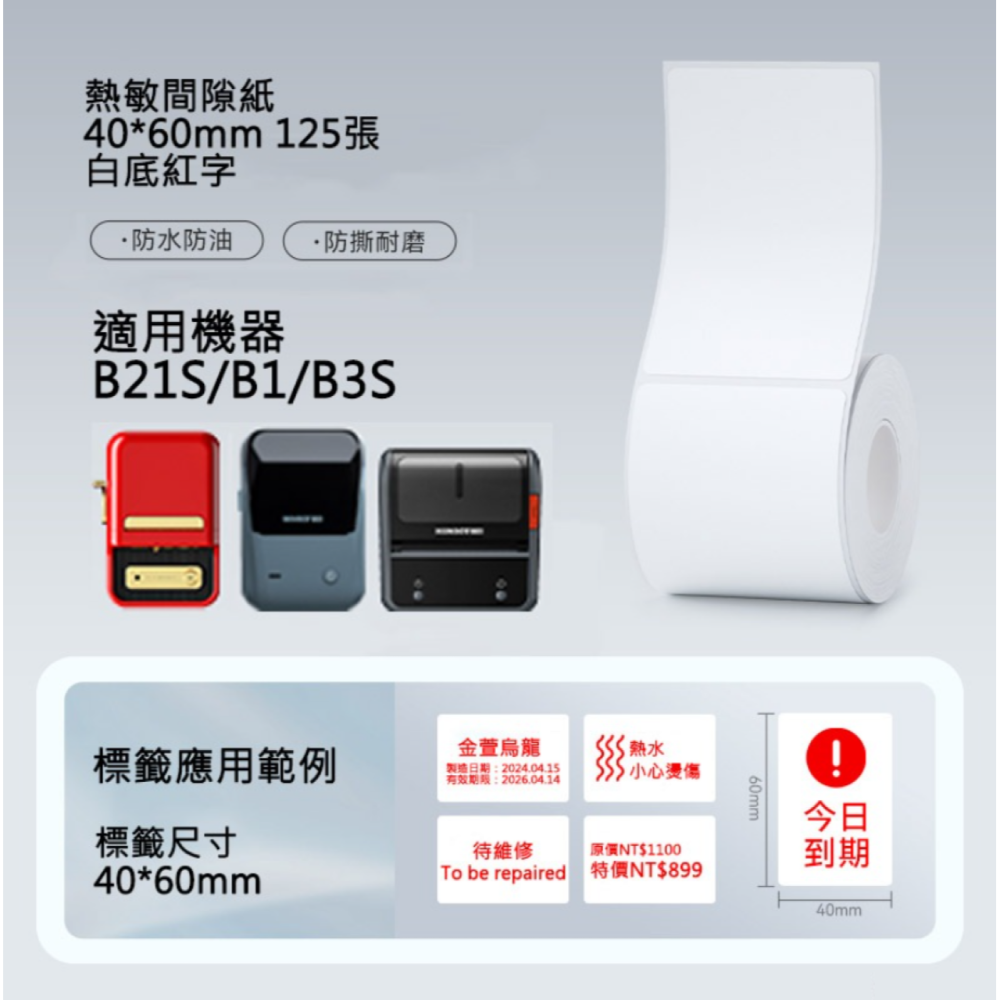 【B1 B21S B3S 精臣標籤機專用】❤紅字系列❤ 白底紅字40*60