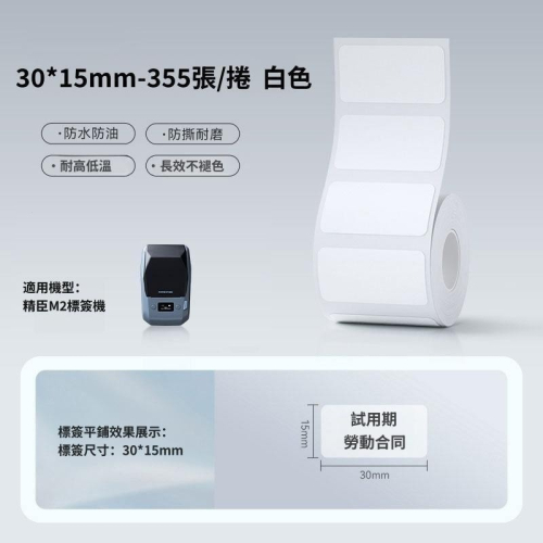 【M2精臣標籤機熱轉印專用】❤白色系列❤ 白30*15