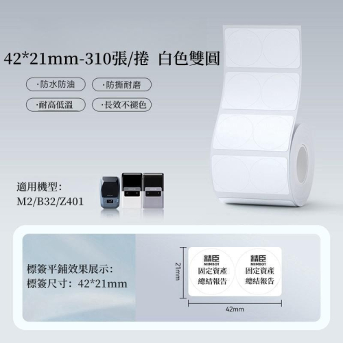 【M2精臣標籤機熱轉印專用】❤白色系列❤ 白色雙排圓