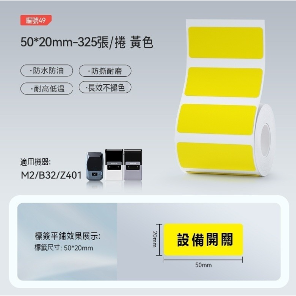【M2 精臣熱轉印標籤機專用】❤花色系列❤ 黃色50*20
