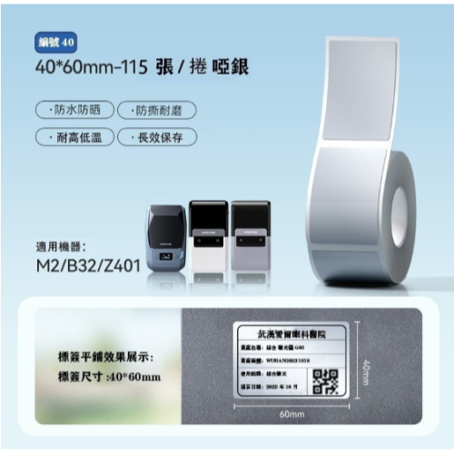 【M2精臣標籤機熱轉印專用】❤白色系列❤ 40*60