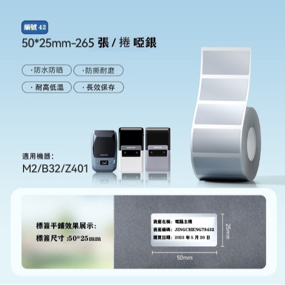 此商品均為精臣原廠熱轉印標籤紙,適用機型M2標籤機。
