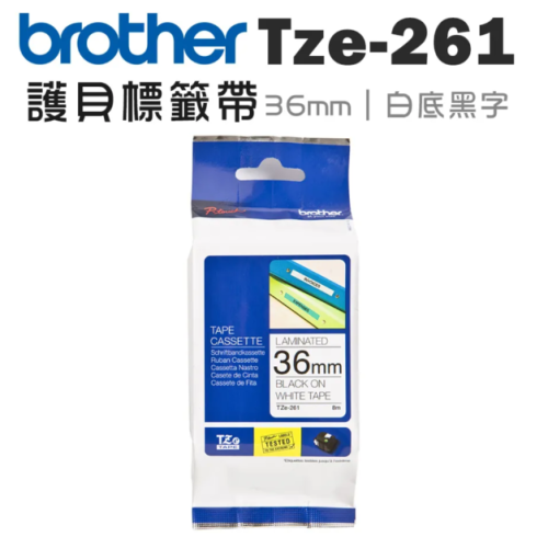 【Brother原廠標籤帶】 36mm 白底黑字 (TZe-261 原廠質感護貝標籤帶標籤帶)