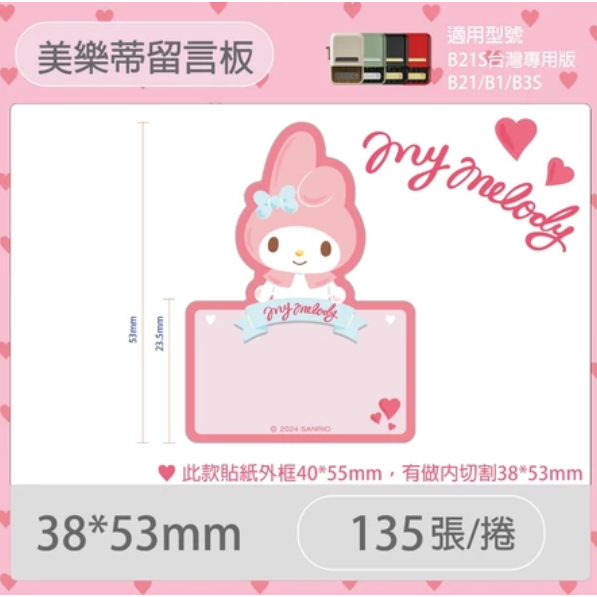【B1 B21S B3S 精臣標籤機專用】❤三麗鷗•聯名系列❤ 美樂蒂留言版