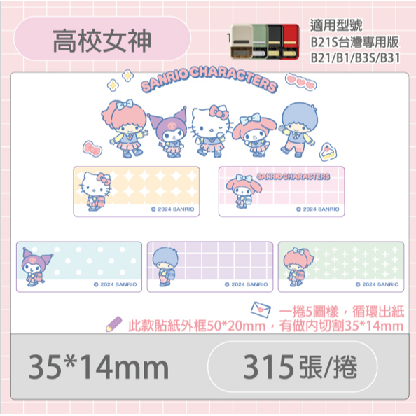 【B1 B21S B3S 精臣標籤機專用】❤三麗鷗•聯名系列❤ 高校女神