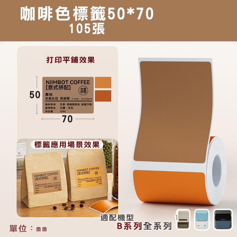 【B1 B21S B3S 精臣標籤機專用】❤花色系列❤ 咖啡色標籤50*70