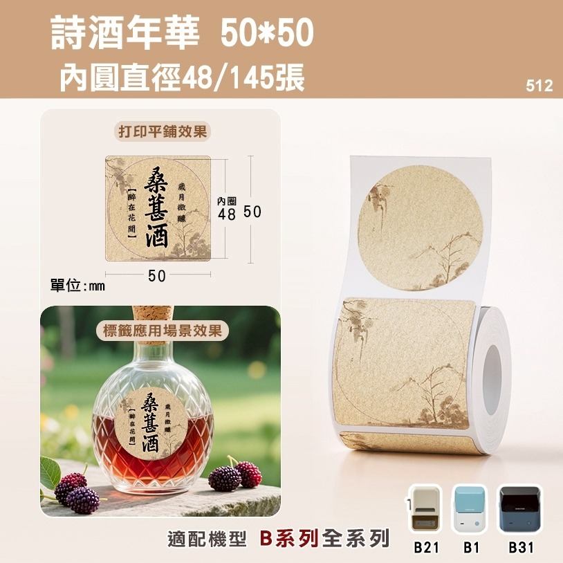 【B1 B21S B3S 精臣標籤機專用】❤花色系列❤ 詩酒年華_圓50mm