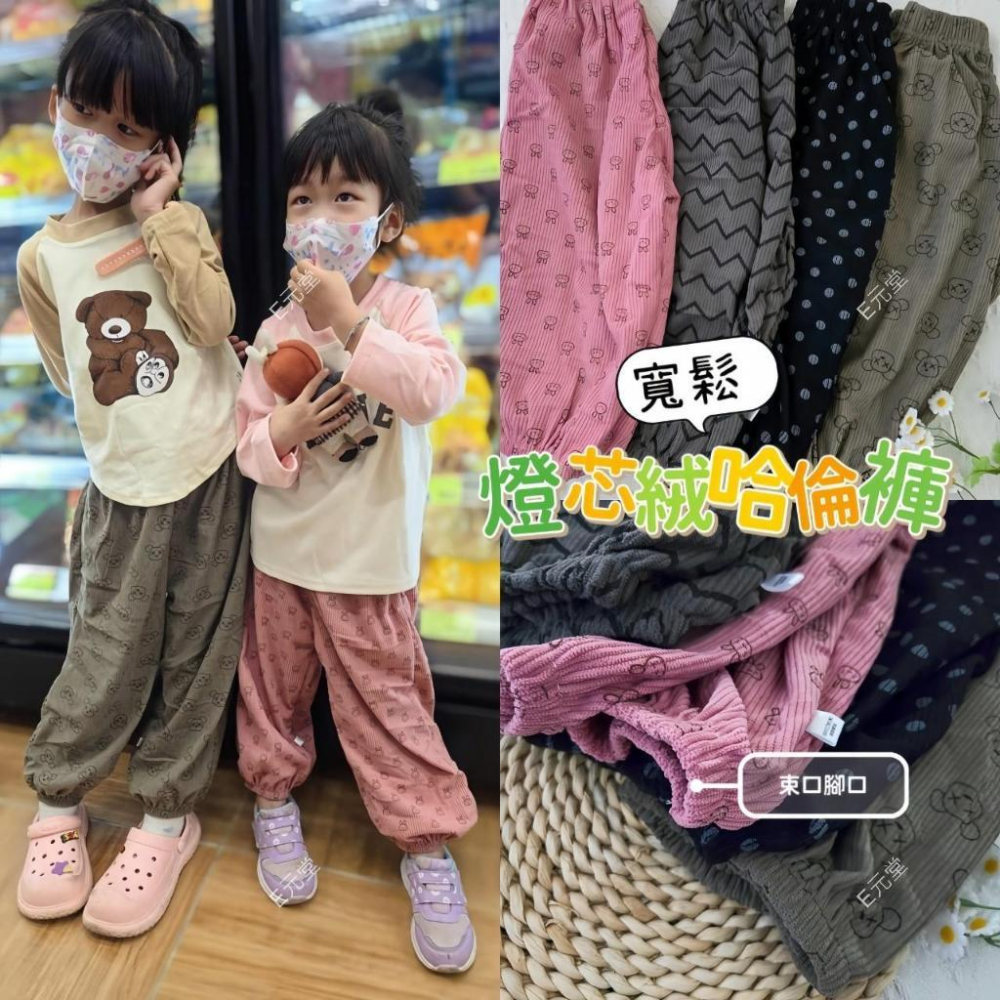 (現貨,附發票)秋冬款~兒童燈芯絨寬鬆哈倫褲 兒童寬鬆哈倫褲 兒童長褲 男童長褲 女童長褲 E元堂