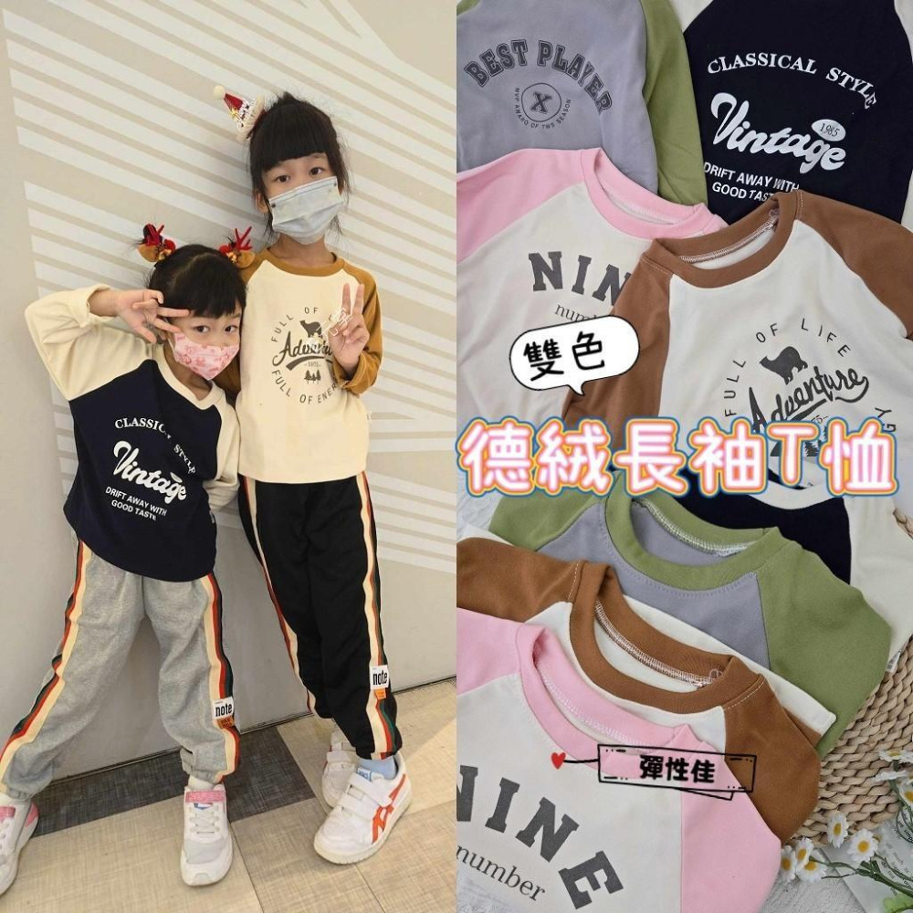 (現貨,附發票)秋冬款~大童童裝 兒童雙色德絨上衣 兒童長袖上衣 兒童長袖T恤 女童上衣 男童上衣 E元堂