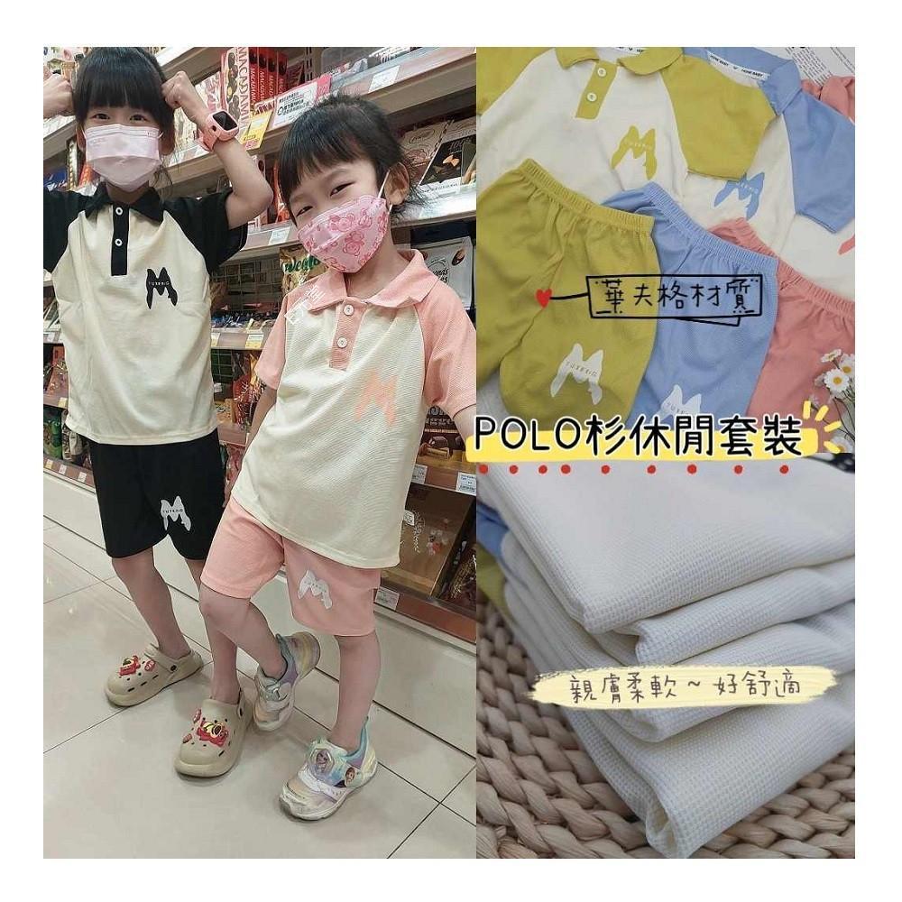 ( 現貨,附發票)兒童POLO衫款~華夫格休閒套裝 兒童套裝 男童套裝 女童套裝 E元堂