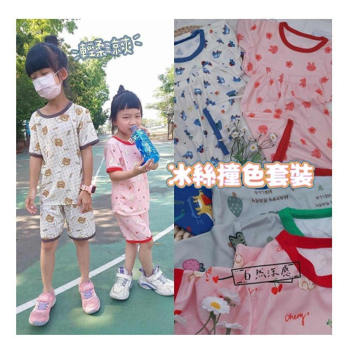 🔵此商品為非應實施檢驗之商品。 商品名稱 : 冰絲撞色套裝 商品款式 : 粉色花朵兔子 / 深藍小恐龍 / 粉色櫻桃小兔子 白底交通工具 / 可可cute小熊 / 灰綠小恐龍 商品尺碼 : 100 / 110 / 120 / 130 / 140 / 150 商品特色 : (1)手感滑順很柔軟,觸感佳,稍有涼感. (2)彈性稍有不多,有垂墜感.