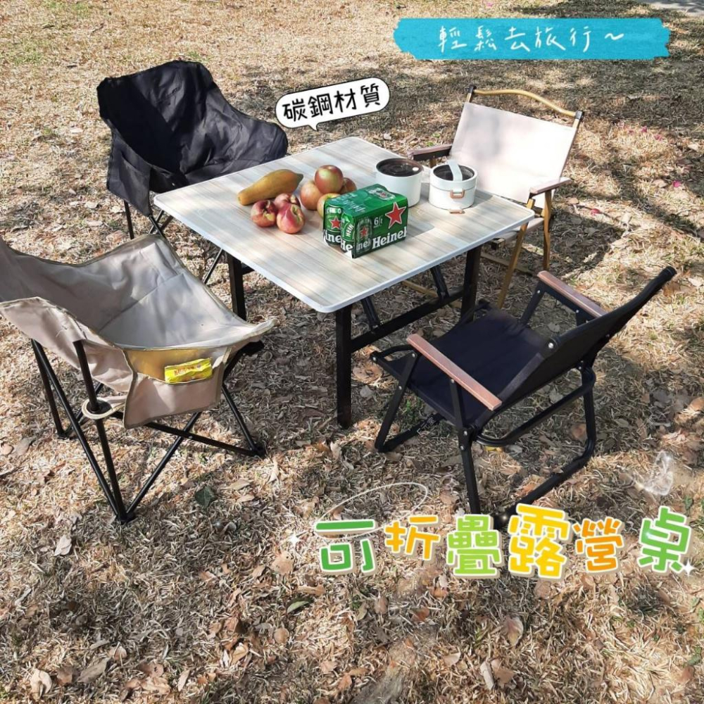 商品名稱 : 摺疊露營桌 商品尺寸 : 80 X 80 X 53CM 商品款式 : 木紋桌面 (木紋為隨機花紋,不挑款) 商品特色 : 超級方便,居家,戶外露營,臥室接好使用 的一款好摺疊桌。 使用心得 : 此款目前小編拿來做露營使用,搭配公司的椅子高度剛剛好喔~ 這是老闆找了很久,替代蛋捲桌的一個好選擇 ! !